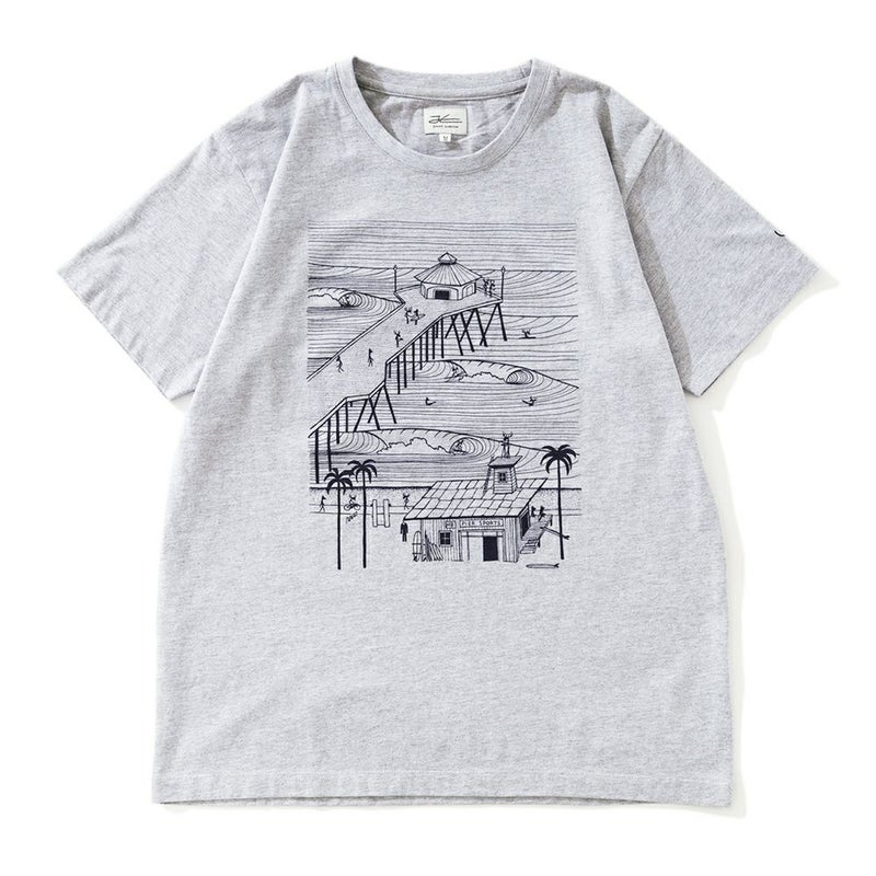 詳細:JONASのトレードマークである「MOOSE(ヘラジカ)」が海を満喫する姿と、へと延びる桟橋が描かれたTシャツです。